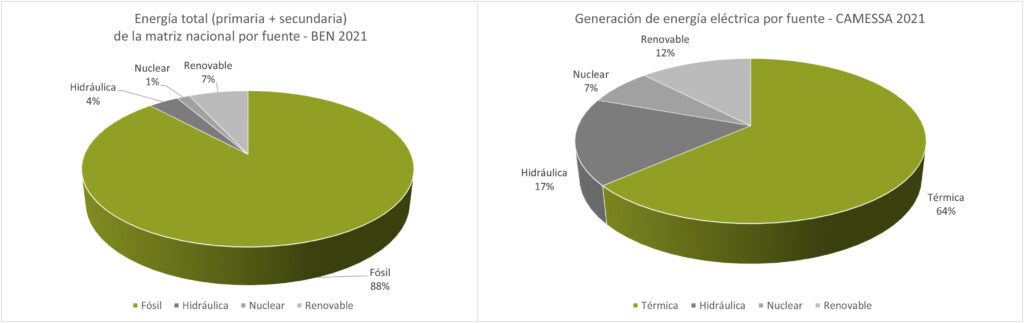 De acuerdo al Balance Energético Nacional del año 2021 y los datos del mismo año del informe anual de la Compañía Administradora del Mercado Eléctrico Mayorista, encontramos que: