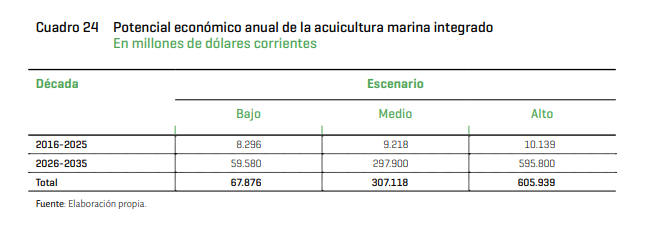 9) Cito: «El potencial económico de la acuicultura marina va desde el 12% a más del 100% del PBI argentino (…) La actividad podría tener lugar en un horizonte de tiempo no muy lejano un importantísimo impacto sobre el PBI, el empleo y la generación de divisas».