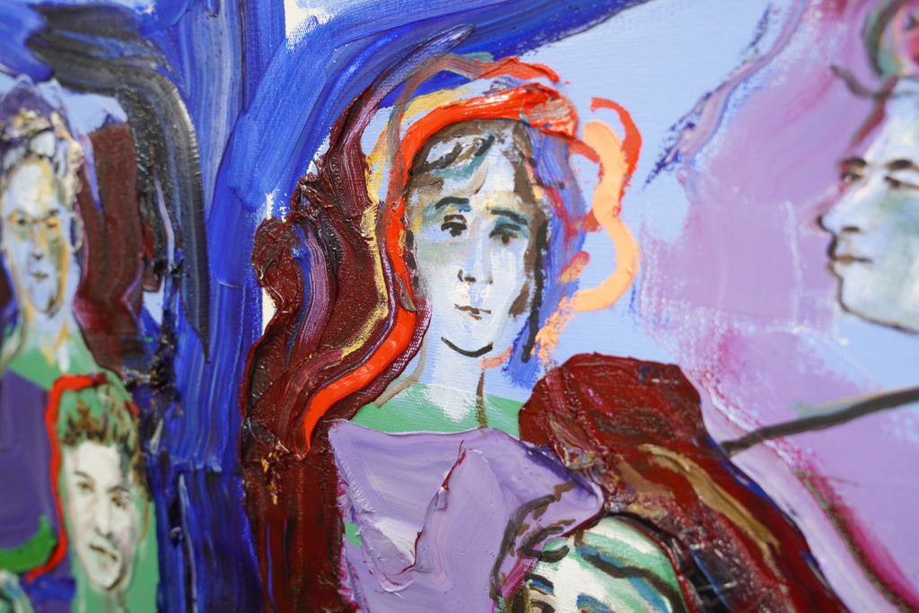 Desde que llegó la propuesta inicial de Mlynarzewicz, en julio de 2022, se inició un proceso donde intervino el Consejo Directivo de la Facultad a través de la Comisión de Extensión, Cultura Científica y Bienestar y que requirió encuentros con el artista en los que se terminó de definir la temática. Para el artista plástico fue una experiencia novedosa. “Cuando pinté la cúpula del teatro Regio de Buenos Aires, su director, Kive Staiff, me convocó y me ofreció hacerlo, no hubo ninguna indicación ni consideración al respecto”, ejemplifica y agrega: “En cambio, acá en Exactas, me convocaron a reuniones, me escucharon, me dieron pareceres, hablé con mucha gente, lo que me pareció una experiencia totalmente diferente, intensa y super interesante”. Una vez cerrado el leiv motiv, que sería el homenaje a las pioneras, Mlynarzewicz tuvo encuentros con el Programa de Historia de la Facultad para empezar a conocer las historias y perfiles de esas mujeres. “Escuché mucho a la gente de Historia, pude conocer sus vidas, pude ver fotos, grabados, y con todo eso comencé a pensar en cómo expresar todo eso en retratos”, explica.