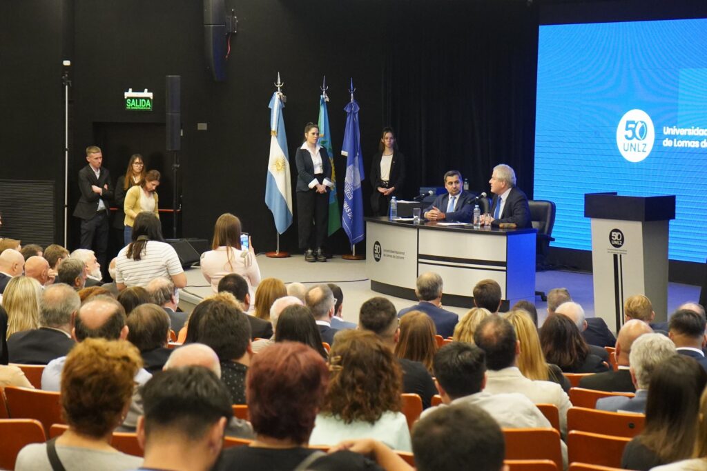 La Universidad Nacional de Lomas de Zamora realizó el Acto Oficial de Celebración por su Cincuentenario en su Auditorio Central. La ceremonia fue encabezada por el Ministro de Educación de la Nación, Jaime Perczyk, y el Rector de la casa de estudios, Diego Molea.