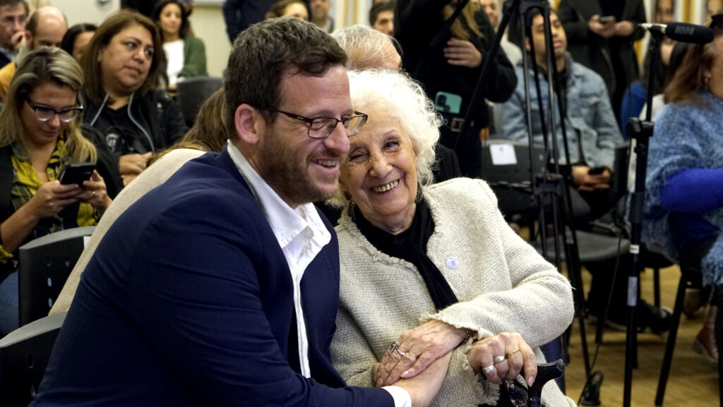 “Las universidades somos instituciones con vocación de permanecer en el tiempo; nuestro rol es tomar la agenda y no permitir que se interrumpa. Para honrar eso que han construido las abuelas, los jóvenes tenemos que asumir esta responsabilidad y desde el lugar en el que estemos tratar de generar las mejores condiciones para continuar esa lucha, no solo para seguir escribiéndola sino para impedir que se borre”, sostuvo muy emocionado el rector Darío Kusinsky