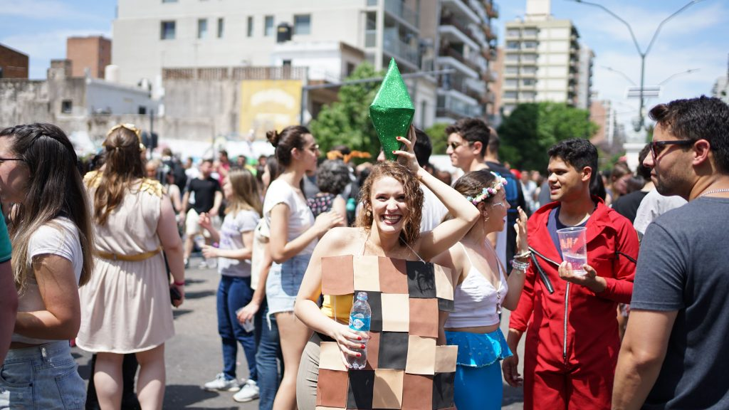 Con el tránsito cortado en la zona, el masivo grupo de jóvenes disfrazados con mucha inventiva comenzaron a hacer en la calle su fiesta. Una chica consultada en LT8 relató que estaba caracterizada de porritas ya que concurrió al lugar junto con toras 9 compañeras más que decidieron ir con dicho atuendo y sus amigos de facultad fueron de basquetbolistas para hacer el equipo completo. “Está todo combinado, empecé a estudiar medicina esperando este momento”, aseguró.