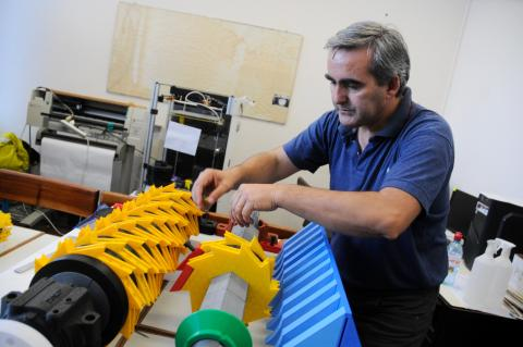 El ingeniero Juan Arrospide está a cargo del diseño de la máquina. “El objetivo -dice- es estudiar el comportamiento del triturado de neumáticos. No hay datos de cuánta fuerza ejerce el neumático al ser desgarrado, qué potencia necesita y qué materiales son los óptimos”. Por esto resulta importante para los investigadores hacer un análisis de la mecánica del triturado.